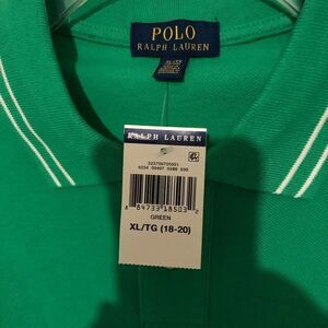 POLO by Ralph Lauren Green Polo Shirt Sz XL 18-20 NWT. This is actually a youth size and measurements are 17” shoulder to shoulder, 19” pit to pit and 29” back of neck line to hem approximately. Please refer to measurements for proper fit.