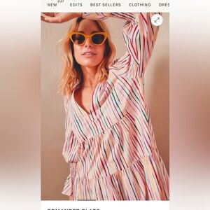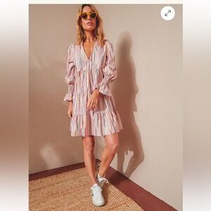 Featuring feminine flutter smocked cuffs, a V-neckline, and a loose empire waist, the Kenzo Dress is the most flattering flirty frock! Updated in abstract rainbow stripes, this is an effortless beach to bar, day to night number. Pair with flats for a casual look or dress up with heels and statement earrings for date night.
