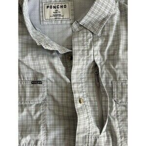 The Poncho Men's original THE OVERCAST Short Sleeve Shirt in size XXL and Grey And Blue Plaid color is a stylish and comfortable casual button-down shirt perfect for outdoor activities. Made from a blend of nylon and spandex, this shirt offers a regular fit and features a solid pattern with a button closure. Its short sleeve design and button-up style make it a versatile addition to any man's wardrobe, suitable for various casual occasions.