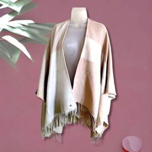 PONCHO/Cardigan Soia & Kyo PINK/CREAM/ GRAY Draped FRINGED Beautiful & Soft