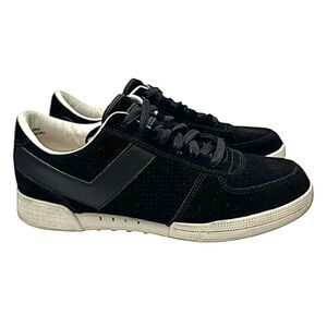 Experience the perfect blend of style and comfort with these PONY sneakers, featuring a sleek black and white color scheme. Crafted from a combination of suede and leather, these low-top sneakers offer a textured look and a traditional lace-up closure. The light-colored rubber sole ensures durability and a comfortable stride for everyday wear.