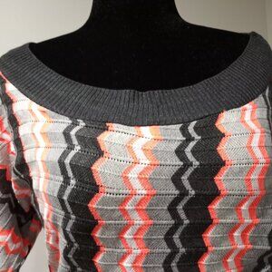 POOF BROWN|GREY STRIPED GEOMETRIC SHORT SLEEVE KNIT TOP WOMEN SIZE M