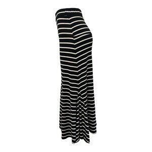 POOF Black White Stripe Flowy Lightweight Stretch Jersey Maxi Skirt