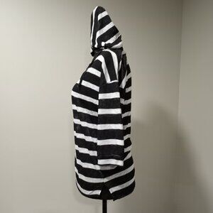 POOF NY BLACK AND WHITE HORIZONTAL STRIPE HOODED TOP WOMEN SIZE S