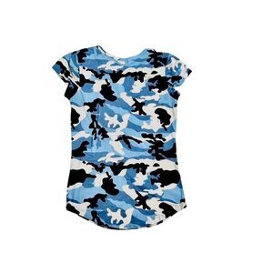 POOF NY Blue Camouflage Stretch Soft Crew Neck Top SMALL Curved Shirttail
