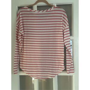 POOF! Women’s (L) red white striped Top 3/4 SL Cotton Blend Pullover