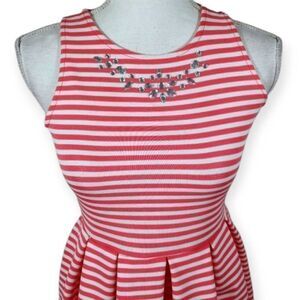 POOF GIRL PINK & WHITE STRIPE EMBELLISHED DRESS SZ.YL EUC.