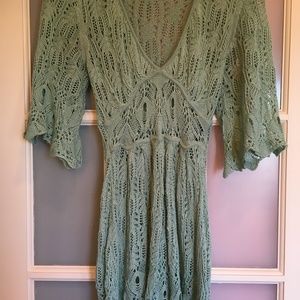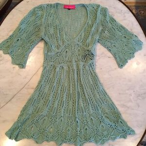 POOKIE & SEBASTIAN Moss Green Crocheted Sweater; Size: Small; Short Sleeves; Material is 100% Acrylic;