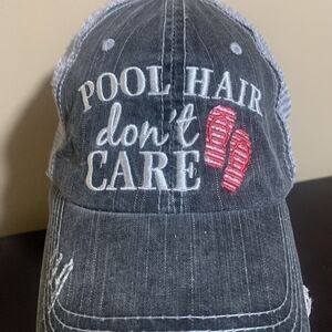 POOL HAIR DON'T CARE Snap Back Distressed Gray Black Pink Trucker Cap Hat Fun