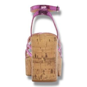 POP Admission Platform Strappy Sandals Sz 8M Pink Metallic Cork Block Heel