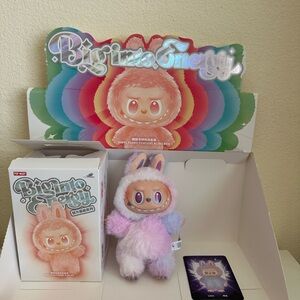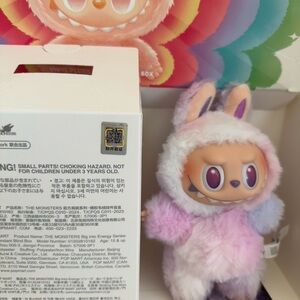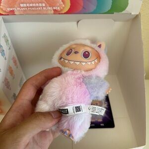 This labubu vinyl plush is brand new, and super adorable. It is fully authentic, and features the QR code as well. It is purple, blue and pink color. This is Luck.