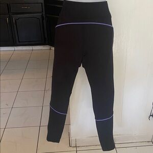 Chic black leggings with subtle purple accents. Ideal for everyday comfort.