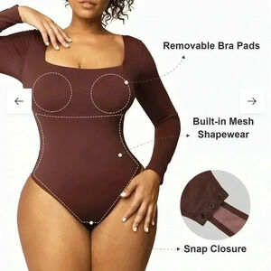 POPILUSH Contour Long Sleeve Square Neck Bodysuit