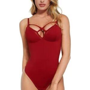 POPILUSH THONG SHAPEWEAR MESH TRIM TUMMY CONTROL PUNGE V-CUT BODYSUIT SIZE XL NWT