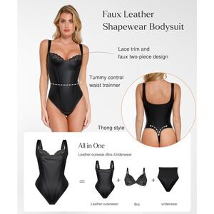 POPILUSH Shapewear Faux Leather Lace Balconette Sculpting Bodysuit 📦