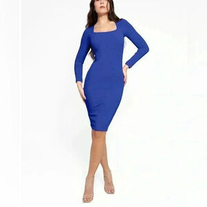 POPILUSH Shapewear Long Sleeve Square Neck Modal Slimming Midi Dress