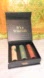 You will receive three different flavors in this adorable gift box with a magnetic closure. There are three flavors: Chai latte, Emerald mint, and pecan pie! All three are unused with the seal.