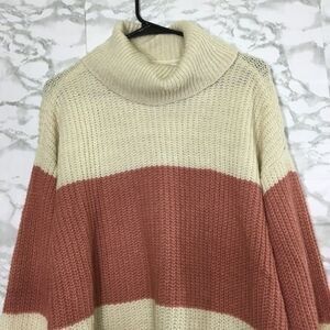 POPSUGAR COLOR BLOCK COWL NECK KNIT BUBBLE SLEEVES SWEATER LARGE CASUAL COMFY