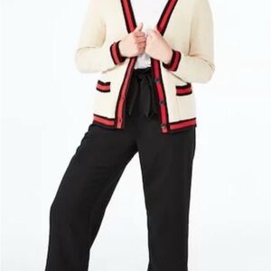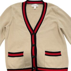 POPSUGAR Varsity Cardigan Beige Cardigan with Red and Black Trim Size L
