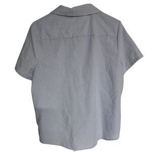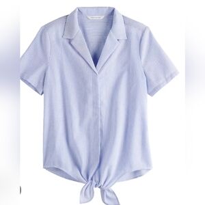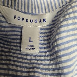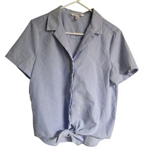 POPSUGAR Women's Blue Striped Front Tie Button Up Shirt Large