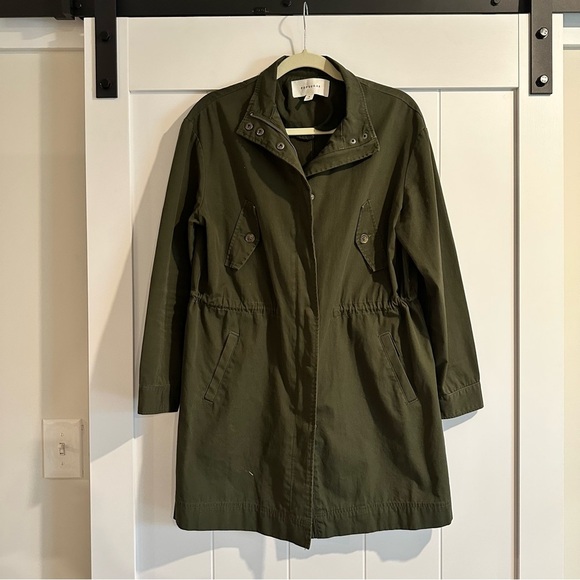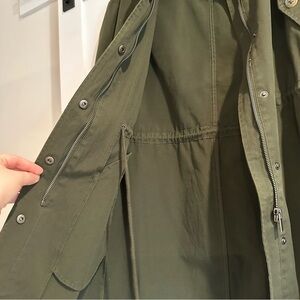 Stay stylish and comfortable with this olive green women's utility jacket. Size small, but OVERSIZED fit.
