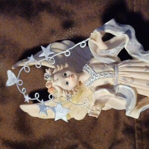 PORCELAIN 8INCH ANGEL WITH HEARTS, AND STARS.