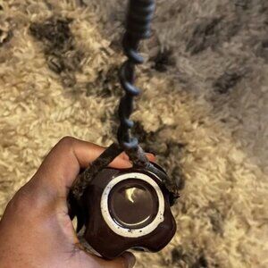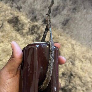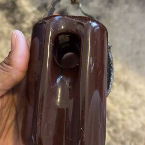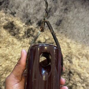 Vintage Johnny Ball ceramic insulator with original wire still intact. No chips, but the varnish is scratched in some areas. The insulator is approximately 5 inches tall and 2.75 inches wide. A thick piece of twister wire is attached to the insulator and extends 6 inches. Please see photos for details.