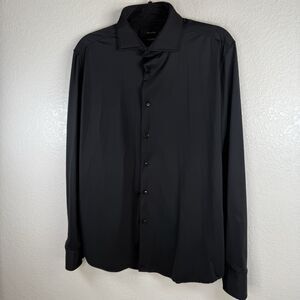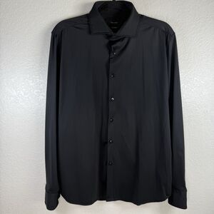 PORTER & ASH Kinetic Stretch Button Up LARGE Black Long Sleeve Luxury Soft