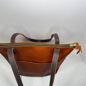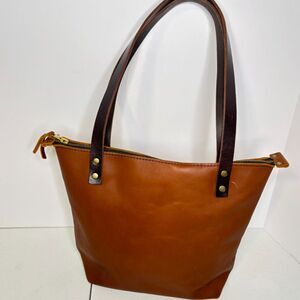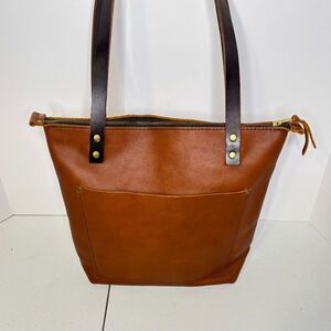 PORTLAND LEATHER GOODS Almost Perfect Tan Zip Leather Tote Shoulder Bag Designer