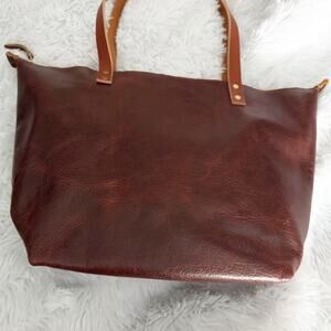 Unicorn 🦄 CINNAMON BEAR (sort of a reddish-brown) Large tote with Light Brown Handles (Tandles) from PORTLAND LEATHER GOODS! Top Zipper closure. Brand new, never had tags. See measurements in photos.
