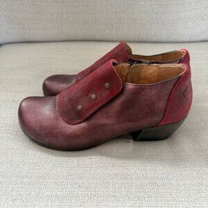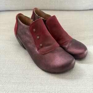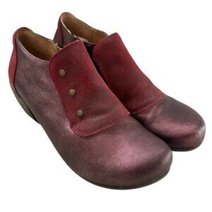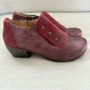 PORTOFINO Metallic Burgundy Red Leather Kitten Heel Shoes 19811 Velcro Zipper 40