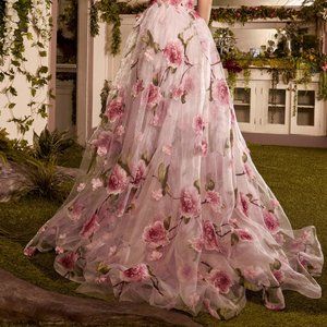 PORTRAIT OF A ROSE PRINTED ORGANZA GOWN A1035