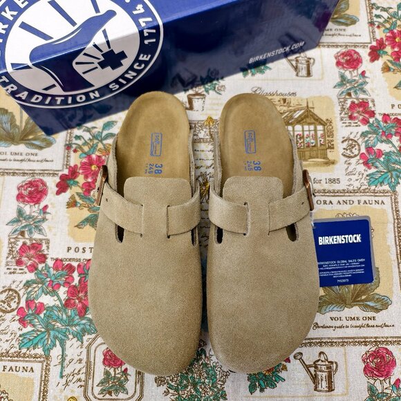 👑POSH NWT Women's Taupe Suede Birkenstock Boston Shoes - Narrow Fit