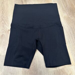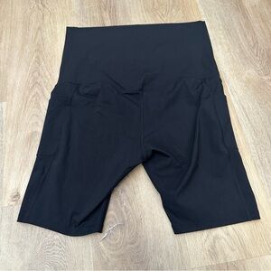 POSHDIVAH Black Maternity Bike Shorts with Belly Panel and Pockets size L