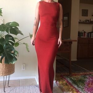 POSSE Deep Red Sleeveless Antonia Thick Ribbed Low Scoop Back Maxi Bodycon Dress