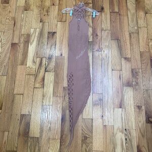I haven’t really seen this style anywhere else. The end of the dress comes down to midi length and it’s quite a unique silhouette for a poster girl dress. This dress got a lot of love from me, but the gems are still in great condition and the dress still has so much to give for the next owner. There’s a small bit of pilling and little pulls of fabric, expected with hosiery. In good condition ✨ I was a size 8 when I bought this and it fit just fine. I love the snatch these dresses give.