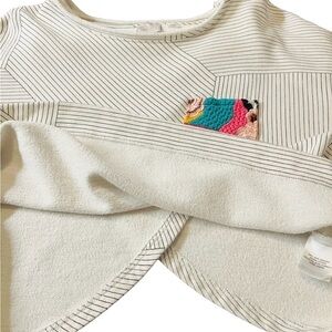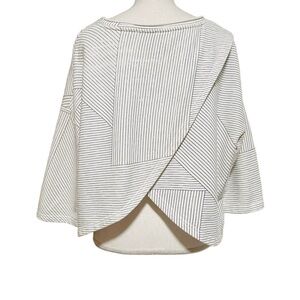 POSTMARK ANTHROPOLOGIE WOMENS WHITE WITH BLACK GEO PATTERN LINES OVERSIZED MED