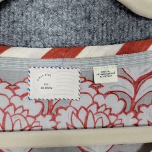 POSTMARK Anthropologie Red Floral Striped 3/4 Sleeve Henley Tee SIZE MEDIUM