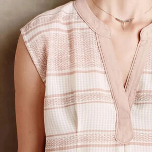 POSTMARK by ANTHROPOLOGIE Egress Splitneck Tee in Nude Stripe