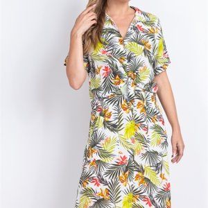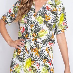 POTTERS POT Set Skirt & Top Botanical Island Slit Skirt Pockets Buttons Tie, Med
