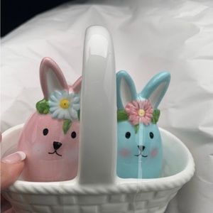 POTTER'S STUDIO "EASTER BASKET PINK & BLUE BUNNIES” Salt and Pepper Set NEW
