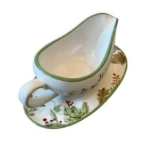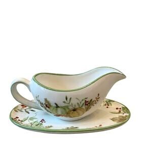 POTTER'S STUDIO Gravy Boat & Underplate Ceramic Fall Thanksgiving Serveware New