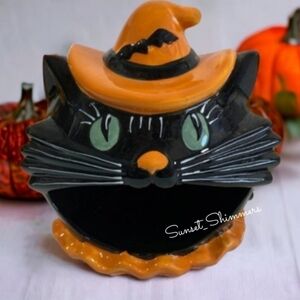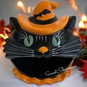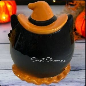 Potter's Studio Halloween Retro Black Cat Witch Hat Ceramic Candy Treat Jar, made of ceramic 8" x 8". Sooooo cute!