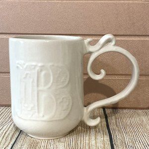 POTTERY BARN A-Z Mugs Monogram Mug Letter Initial B Cream Cup Scroll Handle EUC