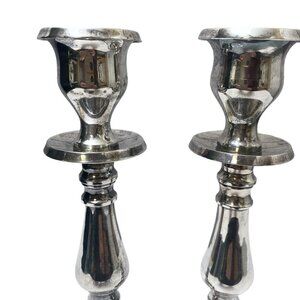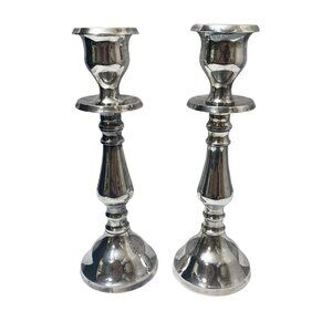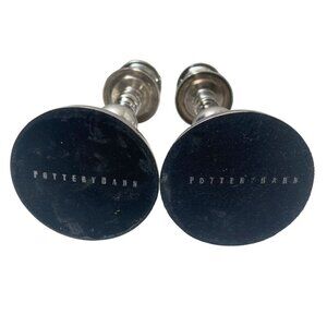 POTTERY BARN Candlesticks Pair Silvertone Metal 8.5" Candle Holders