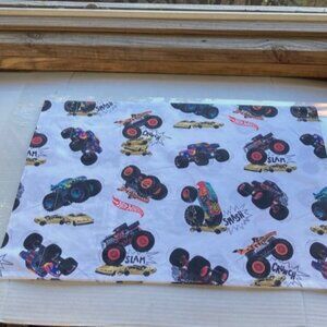 POTTERY BARN Hot Wheel Monster Trucks Organic Toddler Pillowcase 22.5 x 15.5 in