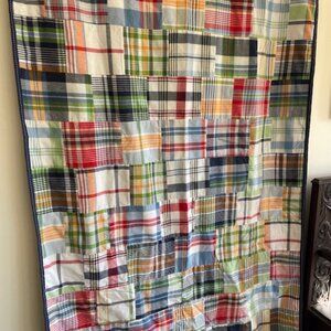 POTTERY BARN KIDS Blue Madras Plaid Patchwork Blackout Curtain Panel (1)