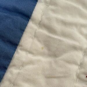 Good condition. Some loose threads on all and minor stains on rectangular pillowcases. (One has just a small dot; the other has a bit more. All subtle.)