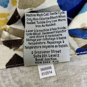 The POTTERY BARN Linen Napkins in the Floral Tropical Set of 12 feature a vibrant blue, yellow, green, and beige color palette with a square shape and a contemporary style. Made from 100% linen with birds and branches as decorative elements, these napkins are perfect for holiday gatherings or everyday use. With hand wash cold care instructions and the option to machine wash, these napkins are both stylish and practical, adding a touch of tropical flair to your dining experience.