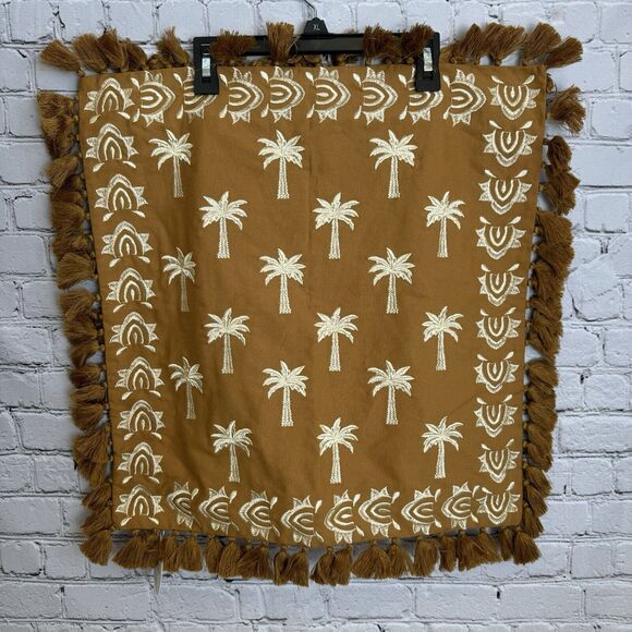 Add a touch of tropical paradise to your home decor with these Pottery Barn Isla palm tree embroidered pillow covers. The elegant square shape is embellished with attractive tassels in a beautiful maple brown colorway perfect for any room, while the embroidered palm tree pattern and textured appliqué add a contemporary touch. Made of 100% cotton material, these pillow covers are soft and durable, and their 20 x 20 in size fits most standard-sized pillows. New with tags.